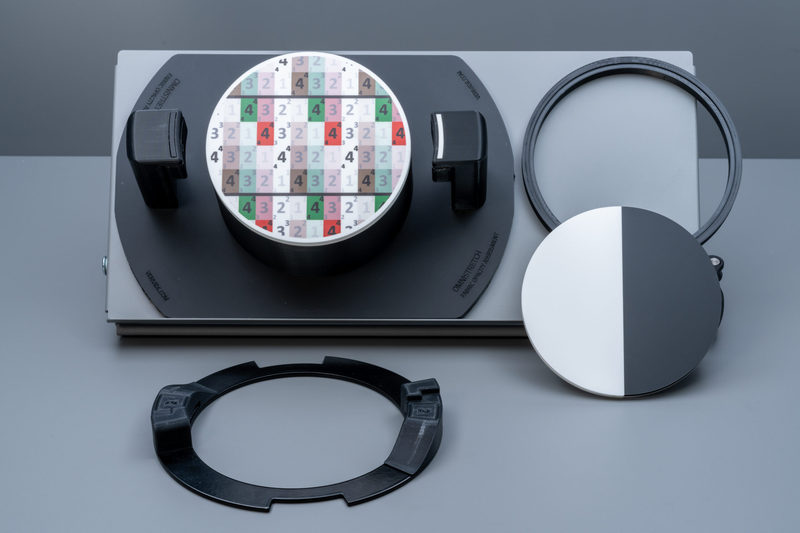 配有兩個測試板:一個編號板與一個黑白對比板,可用於目視或數位評估。 可評估布料在拉伸下的透光度與彈性纖維造成的“grinning”(顯紗)現象